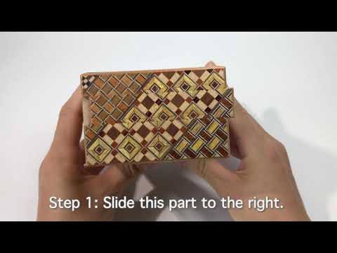 It is made in Hakone, Kanagawa Prefecture known as the origin of a wide variety of timber. Each product has different patterns, so please note that your box may vary from the one shown in the pictures. Trick box is one of the typical products of yosegi zaiku. It is opened by sliding the parts on the sides in the right order. This product requires 9 steps to open. Also, this product can be used as a coin bank as it has a slot to put coins.